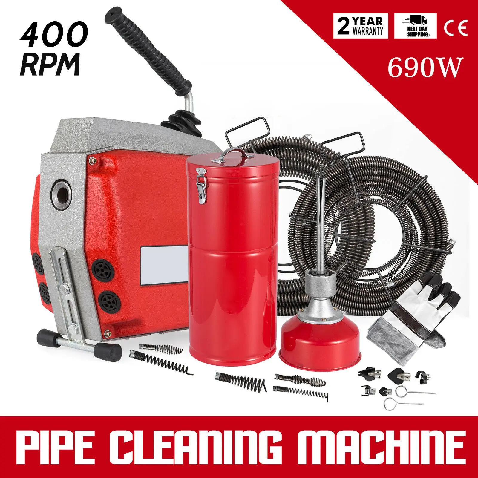 Ø20-160mm 690W Superior Pipe Drain Cleaner Cleaning Machine 16 & 22mm Spirals Set Compact and Versa